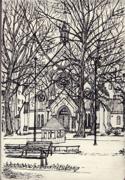 Av de tre tyckte jag nog att Gerards blev bäst, även bortsett från att jag alltid känner att det finns en högre nivå av förtjusning och skönhet, och därmed chans för misslyckande, när det gäller kvinnliga karaktärer. Men allt som allt var det ett fruktbart utforskande av vad markers kunde göra, och inbjöd till fortsättningar. Det kändes också trevligt att få lägga några ytterligare förverkligade utseendestudier för mina karaktärer till raden. Varje gång blir de också stärkta för min inre syn, mer engagerande och intressanta, de träder fram som människor genom att till sist ha fått hamna på papperet, och i en mening fått en materiell skepnad för min hand. Samtliga kommer säkerligen att förekomma i andra teckningar i framtiden, och kanske nya försök att fånga deras anblick mer rättvisande om man, som förhoppningen är, fortsätter att utvecklas i sin förmåga att göra dem rättvisa.