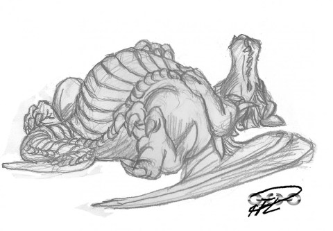 ”Guld? Öh, du menar det här? Nä, det här har jag, öh ärvt från min drakmoster Agda!” När draken sade så lyste spjutet ännu starkare, det glödde så starkt att draken blev alldeles blek i fjällen.