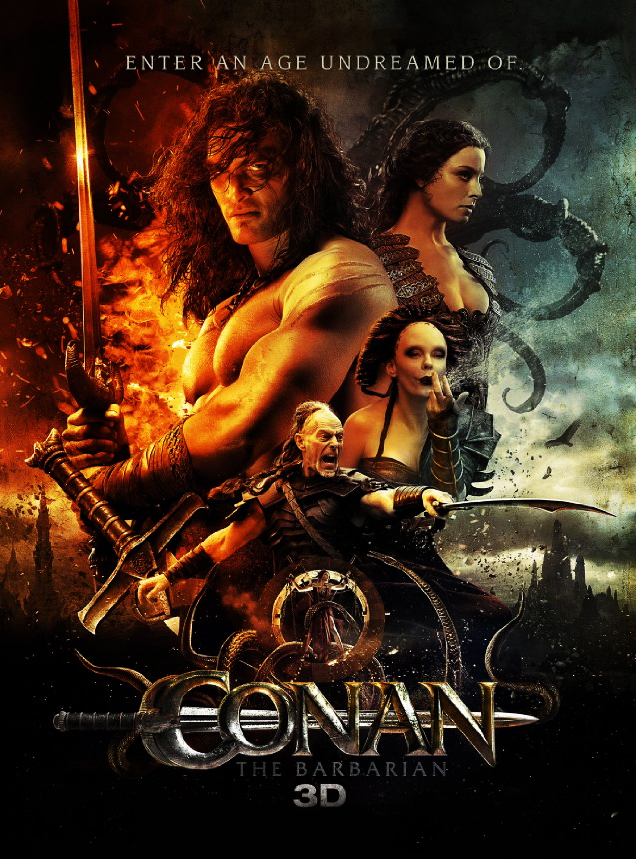 Jag har således inga illusioner eller förväntningar när jag bänkar mig med några yngre medbesökare för att se ”Conan”. Musiken smattrar igång, och en djup stämma som påminner starkt om Morgan Freemans börjar jiddra om fallna imperier och demonmasker och jadajada. OK, det är standard. Sedan smäller det igång, Conan föds på ett slagfält, sedan raskt över till ett idylliserat Cymmerien där Conan redan som pojke slaktar ett dussin vilda fiender som gått vilse från ”den siste Mohikanen”. Oooook. Det är blodigt men effektivt, och har nästan, vågar jag säga det, en liten psykologisk twist – den unge Conan vill lite för mycket, hans stridsvilja gränsar till det neurotiska, vilket en bekymrad fader noterar mellan sina rönnbärsvisdomar om is och eld som stålets hemlighet. En sekund vågar man nästan hoppas på att i alla fall få se en halv film.
